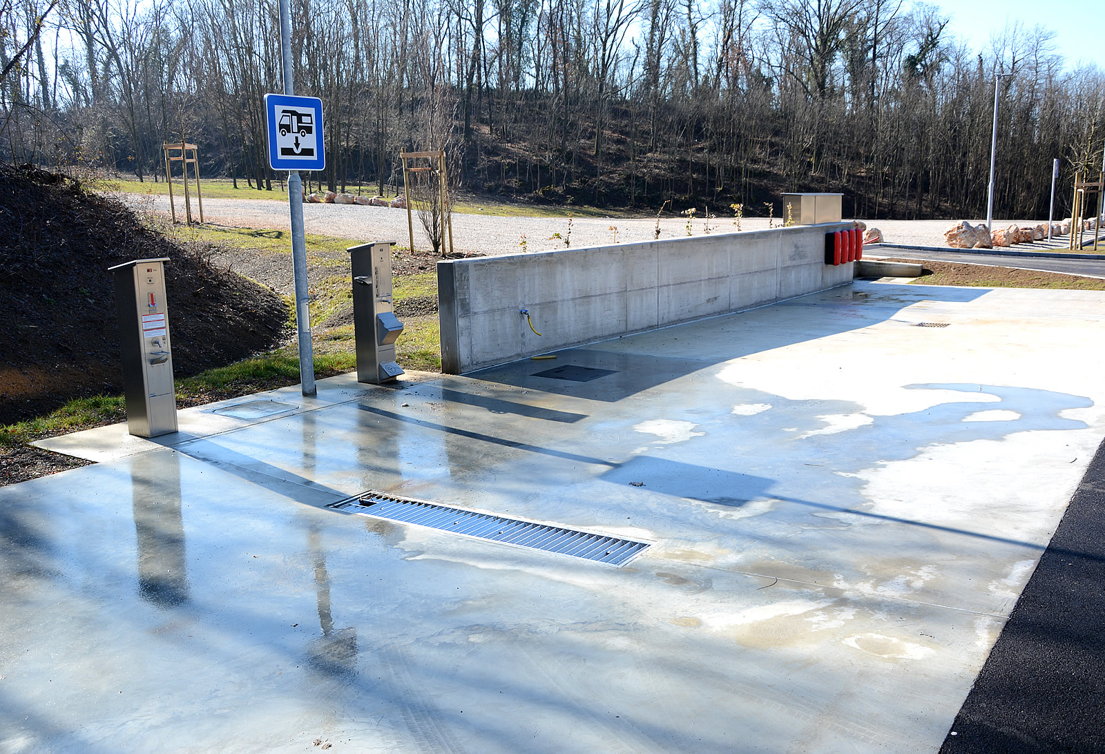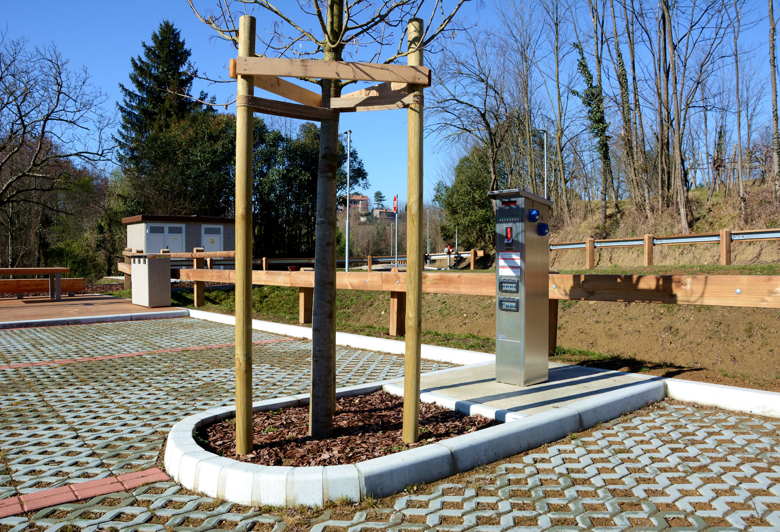 Vsako od osmih parkirnih mest je oskrbovano z elektricno napeljavo in svežo vodo. Prav tako je poskrbljeno za izpraznitev WC kaset ter izpraznitev odpadnih vod iz avtodomov. Vsem gostom je na voljo tudi brezplacen WI FI.